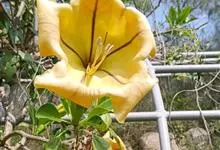 金杯藤 P.S. Green)是茄科、金杯藤属多年生常绿大型藤本。茎及枝条粗壮。叶片互生。长椭圆形。先端突尖。叶面有光泽。全株具有毒乳汁。花顶生,单朵或数朵,花苞棒槌状。从绿色转变为淡黄色。…全部>>
