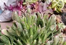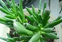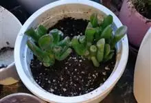 筒叶花月,是景天科青锁龙属的多年生草本植物。植株多分株,灌木状,茎较粗壮,圆柱形,表皮灰褐色;叶片肉质,互生,呈圆筒状,簇生于茎或分枝顶端,叶端呈斜截形,截面为椭圆形;花呈星状,淡白色;花期秋季。…全部>>