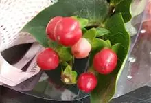 红果金丝桃,园艺栽培品种,属于被子植物门木兰纲金虎尾目金丝桃科金丝桃属。学名:Hypericum × inodorum ‘Excellent Flair’常绿灌木,高1.2米。单叶对生,无柄,椭圆形,…全部>>
