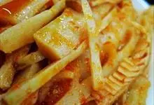 油辣冬笋尖,是一道补气调理、 健脾开胃的湘西山区菜,不可久煮多偏,旺火热油,瞬间即成,质地脆嫩,口味鲜美。全部>>