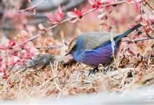 凤头雀莺:小型鸟类。体长9-10厘米,雄鸟呈毛茸茸的紫色和绛紫色,顶冠淡紫灰色,额及凤头白色,尾全蓝。雌鸟喉及上胸白,至臀部渐变成淡紫色,耳羽灰,…全部>>