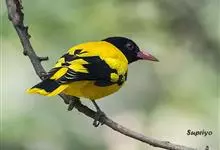 黑枕黄鹂又称黄莺、黄鹂、金衣公子等,是雀形目黄鹂科黄鹂属鸣禽。体长23~27厘米,嘴略下弯,粉色;雄鸟整体主要呈鲜明的黄色,黑色过眼纹在额和枕后相连,且在枕后较粗,形成一围绕头顶的黑色宽带;飞羽黑色,…全部>>