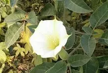 洋金花是茄科曼陀罗属植物,一年生草本植物,全株近于无毛。茎直立,圆柱形,高30~100cm,基部木质化,上部呈义状分枝。叶互生,上部的叶近于对生;叶柄长2~6cm,表面被疏短毛;叶片卵形、长卵形或心形,…全部>>