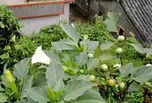 曼陀罗,茄科曼陀罗属一年生大型草本植物,全株光滑。有臭气;叶呈广卯形,边缘具不规则波状浅齿裂;花单生于枝杖间或叶腋,直立,有短梗;花萼是筒状裂片三角形,颜色为白色或淡紫色;果实为蒴果卵状,…全部>>