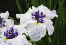 花菖蒲:是玉蝉花的变种。多年生宿根挺水型水生花卉。根状茎短而粗,须根多并有纤维状枯叶梢,叶基生,线形,叶中脉凸起,两侧脉较平整。花葶直立并伴有退化叶1-3枚。花大直径可达15厘米。外轮三片花瓣呈椭圆…全部>>