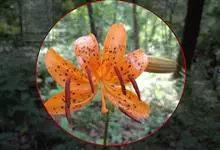 东北百合,别名卷莲花、老哇芋头、轮叶百合、伞蛋花、山丹花,为百合科、百合属多年生球根花卉。鳞茎卵圆形,白色,有节。苞片叶状,花淡橙红色,具紫红色斑点;花被片稍反卷,蒴果倒卵形,花期7-8月,果期9月,…全部>>