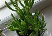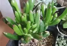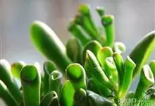 筒叶花月,是景天科青锁龙属的多年生草本植物。植株多分株,灌木状,茎较粗壮,圆柱形,表皮灰褐色;叶片肉质,互生,呈圆筒状,簇生于茎或分枝顶端,叶端呈斜截形,截面为椭圆形;花呈星状,淡白色;花期秋季。…全部>>