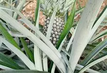 凤梨 Merr.),别名菠萝、露兜子、波罗等,是凤梨科凤梨属一种多年生草本果树。该植物植株高约1米。茎短粗,呈褐色,基部有吸芽抽出。叶多数,莲座式排列,剑形;穗状花序于叶丛中抽出,状如松球;聚花果球状,…全部>>