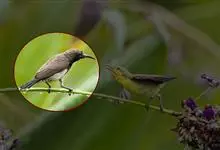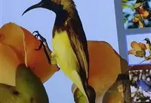 黑胸太阳鸟:小型鸟类,体长9-15厘米。嘴细长而向下曲。雄鸟中央尾羽特长,尾呈楔形,头顶至后颈紫蓝色具金属光泽;背褐红色,腰有一黄色横带,尾上覆羽和尾紫蓝色;颏、喉和上胸乌黑色,有的下胸为硫黄色,…全部>>