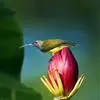 叉尾太阳鸟,雀形目太阳鸟科太阳鸟属留鸟;为小型鸟类,雄鸟头顶辉蓝绿色,上体橄榄绿色,腰明黄色,中央尾羽亮翠蓝色,羽轴针状延长,外侧尾羽黑色具白色端斑,头侧黑色,颜、喉和胸为绛红色,…全部>>