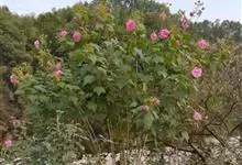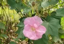 木芙蓉,锦葵科木槿属落叶灌木或小乔木。小枝上有细绒毛;叶片为卵状心形,托叶为披针形,常早落;花单生,花萼为钟形,花冠初为白色或淡红色,后逐渐变为深红色;果实为扁球形,有淡黄色的毛附着。花期8到10月。…全部>>