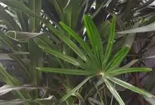 矮棕竹:丛生灌木,高1米或更高些,茎圆柱形,有节,上部被紧密的网状纤维的叶鞘,纤维毛发状,淡褐色。叶掌状深裂,裂片7-20片,线形,具1-2条肋脉,叶柄约与叶片等长,较细,两面凸起,边缘平滑。花雌雄…全部>>