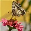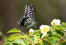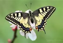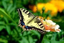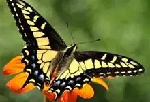 金凤蝶,是鳞翅目凤蝶科凤蝶属动物。金凤蝶为中型凤蝶,翅展70-84毫米,翅背面底色黑褐色,翅脉黑色,翅室具黄斑;前翅背面基部呈暗黄色,亚外缘为黑色,内具一列小黄斑;后翅背面亚外缘区具黑宽边,…全部>>