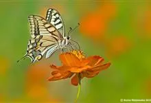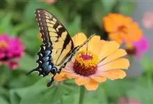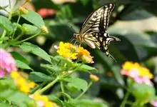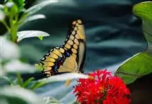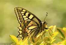 金凤蝶,是鳞翅目凤蝶科凤蝶属动物。金凤蝶为中型凤蝶,翅展70-84毫米,翅背面底色黑褐色,翅脉黑色,翅室具黄斑;前翅背面基部呈暗黄色,亚外缘为黑色,内具一列小黄斑;后翅背面亚外缘区具黑宽边,…全部>>
