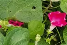 五爪金龙 Sweet),旋花科番薯属多年生缠绕草本植物。茎细长,有细棱;叶片为掌状;花冠紫红色、紫色或淡红色、偶有白色,漏斗状;蒴果近球形。花期5~12月。五爪金龙的叶子类似掌状,有5至7个裂痕,…全部>>