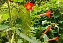 橙红茑萝是旋花科虎掌藤属的一年生草本,又称圆叶茑萝,茎缠绕,平滑,无毛;叶心形,骤尖,全缘,或边缘为多角形,或有时多角状深裂,叶脉掌状;叶柄细弱,几与叶片等长;聚伞花序腋生,总花梗细弱,较叶柄长,…全部>>