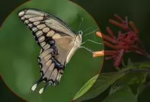 金凤蝶,是鳞翅目凤蝶科凤蝶属动物。金凤蝶为中型凤蝶,翅展70-84毫米,翅背面底色黑褐色,翅脉黑色,翅室具黄斑;前翅背面基部呈暗黄色,亚外缘为黑色,内具一列小黄斑;后翅背面亚外缘区具黑宽边,…全部>>