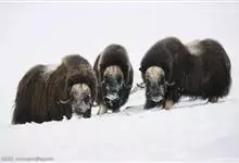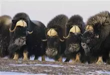 麝牛,是偶蹄目牛科麝牛属哺乳动物。麝牛体型大,但低矮粗壮,头大,吻部宽,眼小;雌雄均具角,四肢短粗,蹄宽大;毛被厚,极耐寒,尾短。雄麝牛在发情时会散发出一种类似麝香的气味,又称麝香牛。…全部>>