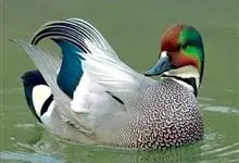 花脸鸭属小型鸭类,个体较绿翅鸭稍大,而较针尾鸭稍小。体长37-44厘米,体重0.5千克左右。雄鸭繁殖羽极为艳丽,特别是脸部由黄、绿、黑、白等多种色彩组成的花斑状极为醒目。胸侧和尾基两侧各有一条垂直白带,…全部>>