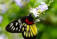 报喜斑粉蝶是粉蝶科斑粉蝶属的一种动物,又名红肩粉蝶、藤粉蝶等。幼虫群集性很强,从同一卵块孵化出的幼虫,幼龄期全部群集在一起取食,高龄幼虫常分散成小群。幼虫群集危害叶片,造成秃枝,严重者可将树吃成光杆,…全部>>