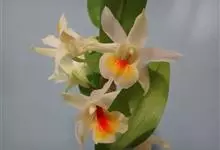 翅萼石斛是兰科石斛属的植物。茎肉质状粗厚,不分枝,干后为金黄色;叶革质,呈长圆形或舌状长圆形;总状花序出自近茎端,花苞片卵形,子房黄绿色,呈三棱形,花有橘子香气,萼囊淡黄色带橘红色,呈角状,花瓣为白色,…全部>>