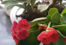铁海棠为大戟科大戟属蔓生灌木植物;茎多分枝,具纵棱,呈旋转状;叶互生,通常集中于嫩枝上;每个花序基部边缘具微小的红色尖头;苞叶先端圆且具小尖头,无柄,上面鲜红色,下面淡红色;苞片丝状;子房光滑无毛,…全部>>