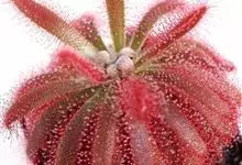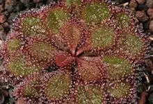 茅膏菜茅膏菜科茅膏菜属多年生草本植物,高32厘米。鳞茎状球茎紫色地上常直无毛,茎顶多分枝;基生叶密集成近一轮,叶片半月形;聚伞花序生于枝顶,白色或红色,种子椭圆形;花果期6-9月。茅膏菜为变种,…全部>>