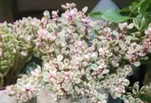 雅乐之舞是马齿苋科马齿苋属多年生肉质灌木植物。植株较矮,株高3~4米;水平分枝,枝干较细;茎肉质,老茎灰白色,新茎红褐色;叶片肉质,黄白色倒卵形,中间为淡绿色新叶,叶缘还带有粉红色;开淡粉色小花,…全部>>