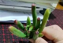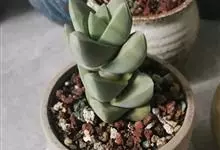 筒叶花月,是景天科青锁龙属的多年生草本植物。植株多分株,灌木状,茎较粗壮,圆柱形,表皮灰褐色;叶片肉质,互生,呈圆筒状,簇生于茎或分枝顶端,叶端呈斜截形,截面为椭圆形;花呈星状,淡白色;花期秋季。…全部>>