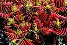 茜之塔 Toelken)是景天科青锁龙属多年生肉质草本植物。茜之塔叶交互对生,紧密排列,三角形,绿色,冬季叶转变呈红色;花小,白色;花期秋季。茜之塔因其整齐层叠的紫红色叶片让人想到红色佛塔,故名。…全部>>