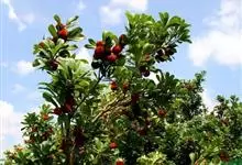 杨梅,杨梅科杨梅属的常绿乔木植物,树冠整齐呈球形;枝脆易折;叶革质,互生,呈披针形或长倒卵形;雌雄异株或偶有同株;雌花序为柔荑花序,为鲜红色的丝状;果实是核果球形,外表面有乳头状突起;果色有红、紫、白,…全部>>