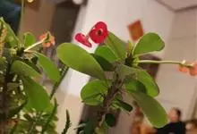 铁海棠为大戟科大戟属蔓生灌木植物;茎多分枝,具纵棱,呈旋转状;叶互生,通常集中于嫩枝上;每个花序基部边缘具微小的红色尖头;苞叶先端圆且具小尖头,无柄,上面鲜红色,下面淡红色;苞片丝状;子房光滑无毛,…全部>>