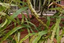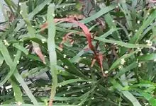竹节蓼 Meisn.)是蓼科千叶兰属常绿灌木。株高可达1-3米;老枝圆柱形,暗褐色,幼茎扁平,亮绿色,形似叶片,有节及纵沟;叶退化,幼年有少量披针形叶片,端渐尖,基部楔形,全缘或近基部有锯齿,…全部>>