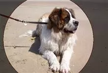 圣伯纳犬,别名巴里汉德,属于大型工作犬,肩高约65~90厘米,体重约50~90千克。圣伯纳犬身体强壮,被毛红褐色和白色相间,头圆而宽大。颈部强壮,胸宽深,背直。前肢长直,腕关节略前倾,后肢腿骨粗壮,…全部>>