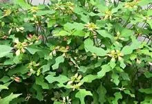 猩猩草:常绿或半常绿灌木,盆栽时株高0.5米-2米,在亚热带地区可长到6米以上。茎直立而光滑,单叶互生,卵状椭圆形至阔披针形,具不规则的深缺刻。长10-15厘米。花小,有蜜腺,排列成密集的伞房花序。…全部>>