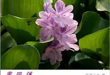 凤眼莲 Solms),是雨久花科凤眼莲属的浮水草本植物。凤眼莲茎极短,具长匍匐枝;叶基生,莲座状排列,宽卵形或宽菱形,先端钝圆或微尖,基部宽楔形或幼时浅心形;花葶具棱,穗状花序;花冠近两侧对称,…全部>>