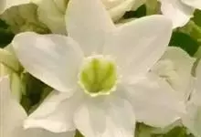 南美水仙是石蒜科、南美水仙属的多年生草本植物,株高约80厘米;叶基生,椭圆形,浓绿色;花亭肉质。顶生伞形花序,着花3到6朵,花冠筒圆柱形,中央生有一个副花冠,花瓣开展呈星状。花为纯白色,…全部>>