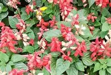 一串红,又称爆仗红、象牙红,为唇形科鼠尾草属植物。花序修长,色红鲜艳,花期又长,适应性强,为中国城市和园林中最普遍栽培的草本花卉。原产巴西、南美洲。喜温暖和阳光充足环境。不耐寒,耐半阴,忌霜雪和高温,…全部>>