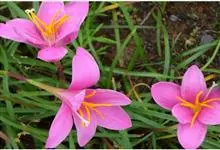 小韭兰学名韭菜莲又名风雨花、菖蒲莲、红玉帘和旱水仙,多年生草本,鳞茎卵球形,基生叶常数枚簇生,线形,扁平,花单生于花茎顶端,下有佛焰苞状总苞,花玫瑰红色或粉红色,蒴果近球形,种子黑色,花期夏秋。韭莲…全部>>