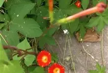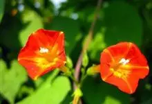 橙红茑萝是旋花科虎掌藤属的一年生草本,又称圆叶茑萝,茎缠绕,平滑,无毛;叶心形,骤尖,全缘,或边缘为多角形,或有时多角状深裂,叶脉掌状;叶柄细弱,几与叶片等长;聚伞花序腋生,总花梗细弱,较叶柄长,…全部>>