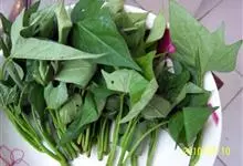 红薯叶又称地瓜叶,即红薯生长过程中的茎上的叶子。红薯叶有很多用途,比如有提高免疫力,保护视力,延缓衰老,解毒等作用。一般食用的是秋天红薯成熟后地上秧茎顶端的嫩叶。 全部>>