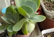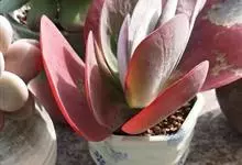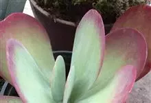 唐印为景天科伽蓝菜属的多年生肉质草本植物。植株中型,株高50厘米,宽20厘米,多分枝;叶片肉质,对生,卵形,全缘,先端钝圆,叶片淡绿色至灰绿色,表面被有厚厚的白粉,光照充足时,叶缘呈红色;圆锥花序,…全部>>