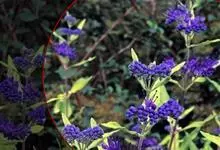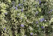 蒙古莸:为唇形科莸属落叶小灌木。常自基部即分枝,嫩枝紫褐色,圆柱形,有毛,老枝毛渐脱落。叶片厚纸质,线状披针形或线状长圆形,背面密生灰白色绒毛。聚伞花序腋生,无苞片和小苞片,花萼钟状,花冠蓝紫色。…全部>>