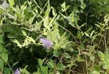 蒙古莸:为唇形科莸属落叶小灌木。常自基部即分枝,嫩枝紫褐色,圆柱形,有毛,老枝毛渐脱落。叶片厚纸质,线状披针形或线状长圆形,背面密生灰白色绒毛。聚伞花序腋生,无苞片和小苞片,花萼钟状,花冠蓝紫色。…全部>>