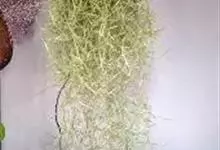 老人须 L.)是凤梨科、铁兰属植物。多年生气生或附生草本植物。植株下垂生长,茎长,纤细,植株长可以达到1-1.5米。叶片互生,半圆形,长3-4厘米,密被银灰色鳞片。小花腋生,黄绿色,花萼紫色,…全部>>