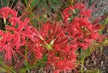 石蒜[学名:Lycoris radiata Herb.],是石蒜科石蒜属的多年生草本植物,别名彼岸花、红花石蒜、死人花、蟑螂花、龙爪花等。石蒜的叶狭带状,中间有粉绿色带,秋季出叶。伞形花序,花鲜红色。…全部>>