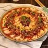 特色传统名菜,属川菜系。主料瘦黄牛肉。辅料豆芽、鸭血、肉汤、莴笋或者其他蔬菜、粉丝。调料葱、精盐、酱油、花椒、味精、熟菜油、干辣椒、辣椒油、胡椒粉、醪糟汁、湿淀粉、郫县豆瓣酱。因菜中牛肉片是在辣味汤…全部>>