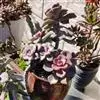 紫珍珠是景天科石莲花属的多年生肉质草本植物。植株中小型;叶片肉质,匙形,呈莲座状紧密排列;叶片粉紫色,叶缘呈粉白色,光照充足时颜色亮丽,不足时叶色会呈现深绿色或灰绿色,叶面光滑,被轻微白粉,…全部>>