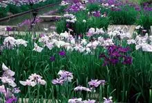花菖蒲:是玉蝉花的变种。多年生宿根挺水型水生花卉。根状茎短而粗,须根多并有纤维状枯叶梢,叶基生,线形,叶中脉凸起,两侧脉较平整。花葶直立并伴有退化叶1-3枚。花大直径可达15厘米。外轮三片花瓣呈椭圆…全部>>