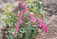 荷包牡丹 Fukuhara),是罂粟科荷包牡丹属的多年生草本植物,株高30-60厘米,具肉质根状茎;茎直立呈圆柱形;叶二回三出全裂,状似牡丹叶;总状花序顶生,基部为心形,花瓣紫红色至粉红色,稀白色,…全部>>